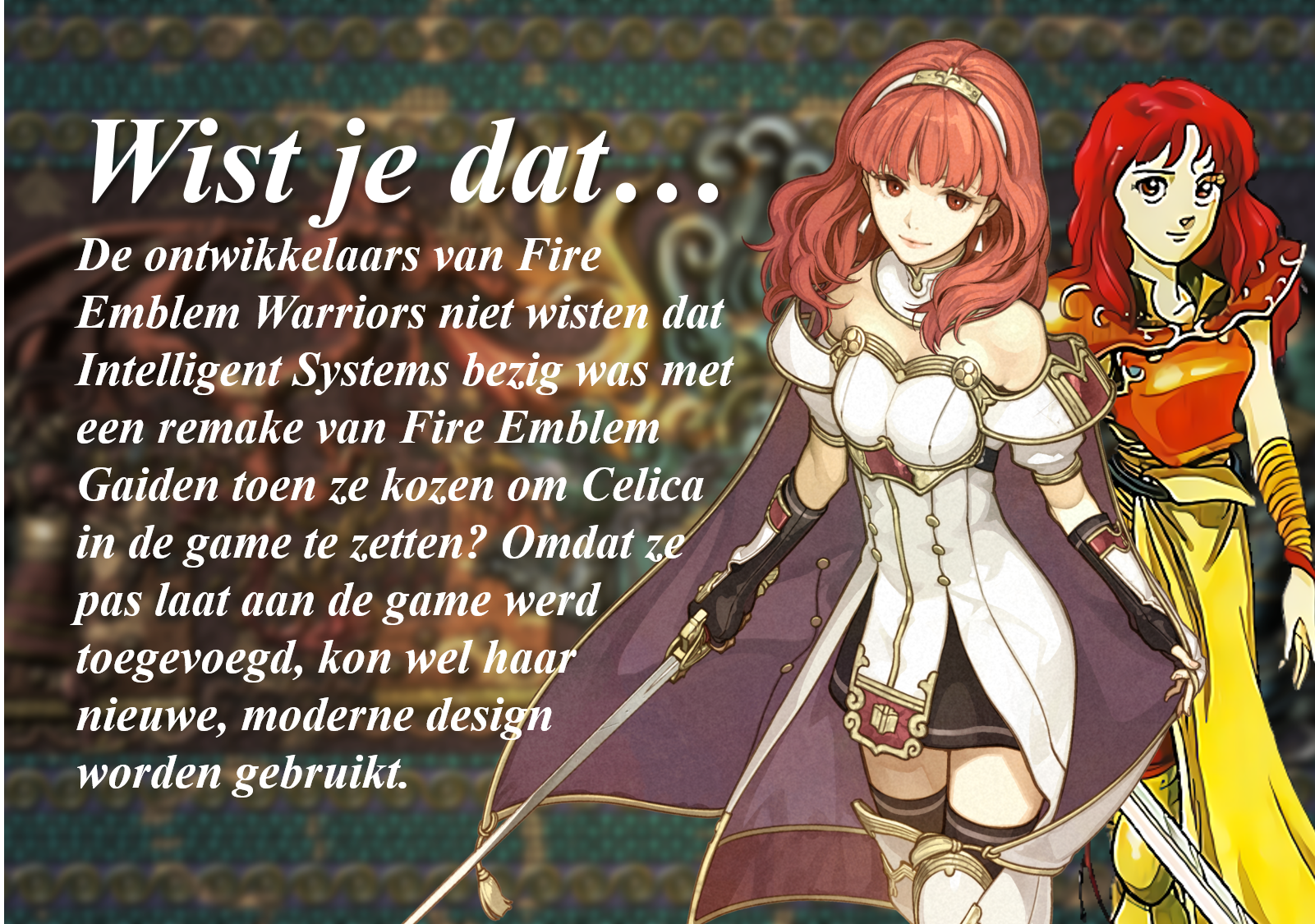 Het is alweer een tijdje geleden, maar onze wekelijkse “Wist je dat…” is weer terug! Elke maandagochtend kun je op Daily Nintendo een nieuw weetje aantreffen met betrekking tot Nintendo en haar vele franchises. Deze week een feitje over Celica – prinses van Zofia in Fire Emblem Gaiden/Shadows of Valentia – en haar verschijning in de spin-off game Fire Emblem Warriors.