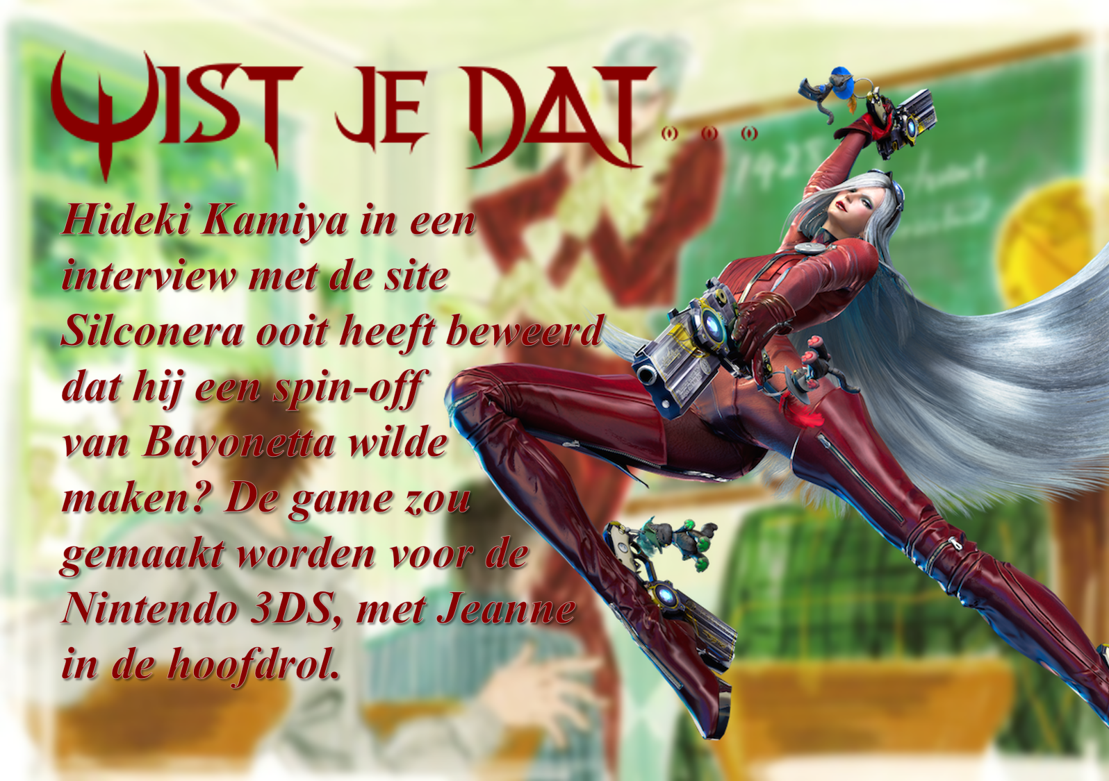 Welkom bij een nieuwe “Wist je dat…”! Elke maandagochtend kun je op Daily Nintendo een nieuw feitje aantreffen met betrekking tot Nintendo en zijn vele franchises. Het weetje van vandaag gaat over een game uit de Bayonetta-serie die nooit het licht gezien heeft. Het is zelfs onduidelijk of deze game ooit serieus in ontwikkeling is geweest, maar wij hadden hem graag gespeeld!