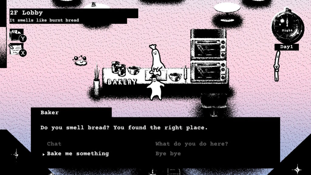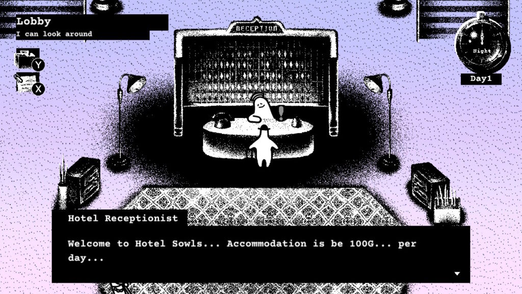 Het is een understatement als je zou zeggen dat Hotel Sowls er anders uit ziet dan andere spellen. De grafische stijl is echt erg uniek, ik heb nog nooit zoiets gezien. De stijl past goed bij het type spel; een vreemde sfeer wordt zo versterkt. Het spel ziet er goed uit op de Nintendo Switch. De muziek past goed bij de game en draagt bij aan de sfeer.
