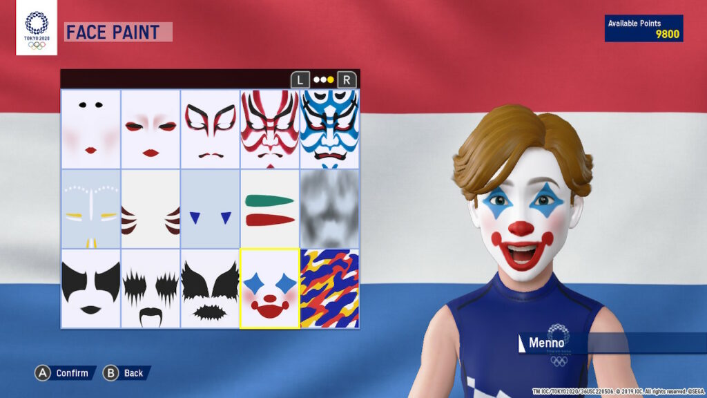 Uiteraard moet je daarna een land kiezen die je graag wilt vertegenwoordigen, maar je mag ook jouw eigen personage maken zodat jij echt zelf in de Olympische Spelen terecht komt. In deze zogenoemde Avatar Creator zijn er enorm veel mogelijkheden waardoor je jezelf zo goed mogelijk na kunt maken. Om te beginnen kun je al kiezen uit verschillende huidskleuren en lichaamsvormen, waar je ook al aan kunt passen hoe groot, breed en gespierd je bent. Daarna mag je alle details in het gezicht zoals de vorm, hoogte en grootte van de oren, wenkbrauwen, ogen, neus en mond aanpassen. Toch zijn er nóg meer details want je kunt het personage ook van sproeten, moedervlekken, make-up, schmink, gezichtsbeharing en van een bril voorzien. Als laatste heb je ook nog de mogelijkheid om verschillende kapsels te kiezen en jouw stem aan te passen. Zoals je hebt gelezen zijn er dus echt heel veel dingen die je kunt veranderen. Persoonlijk vind ik het altijd super leuk om mezelf zo goed mogelijk na te maken, waardoor ik dus ook ruim 30 minuten bezig ben geweest met het maken van mijn personage. Uiteraard begrijp ik dat niet iedereen daar even veel zin in heeft, maar gelukkig heeft SEGA ook aan die mensen gedacht en kun je ook kiezen uit vooraf gegenereerde personages.