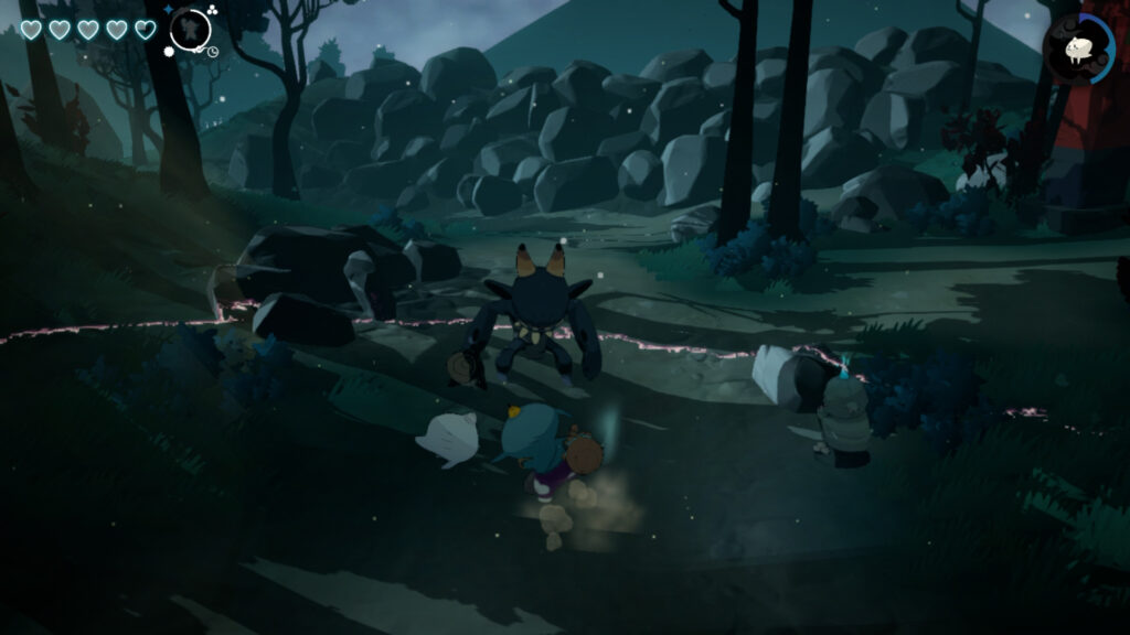 Het leukste gedeelte in de ‘over world’ is zoeken naar verdwaalde geesten, maar zelfs dat wordt op een gegeven moment repetitief. Je vindt een geest (je kan er zelfs meerderen tegelijk met je meenemen) en je loopt naar het standbeeld uit het begin van het spel. Er zijn een paar van deze beelden verspreid op het eiland, maar de wandeling ernaartoe wordt je niet altijd makkelijk gemaakt. Er komt namelijk met regelmaat een grote, boze geest achter je aan om je tegen te houden. Nu zijn die niet moeilijk te omzeilen, maar eerder een “zucht, daar is ‘ie weer”-moment. En wat hebben de ontwikkelaars gedaan voor de variatie? Je krijgt er ineens twee achter je aan. Zucht, zucht…