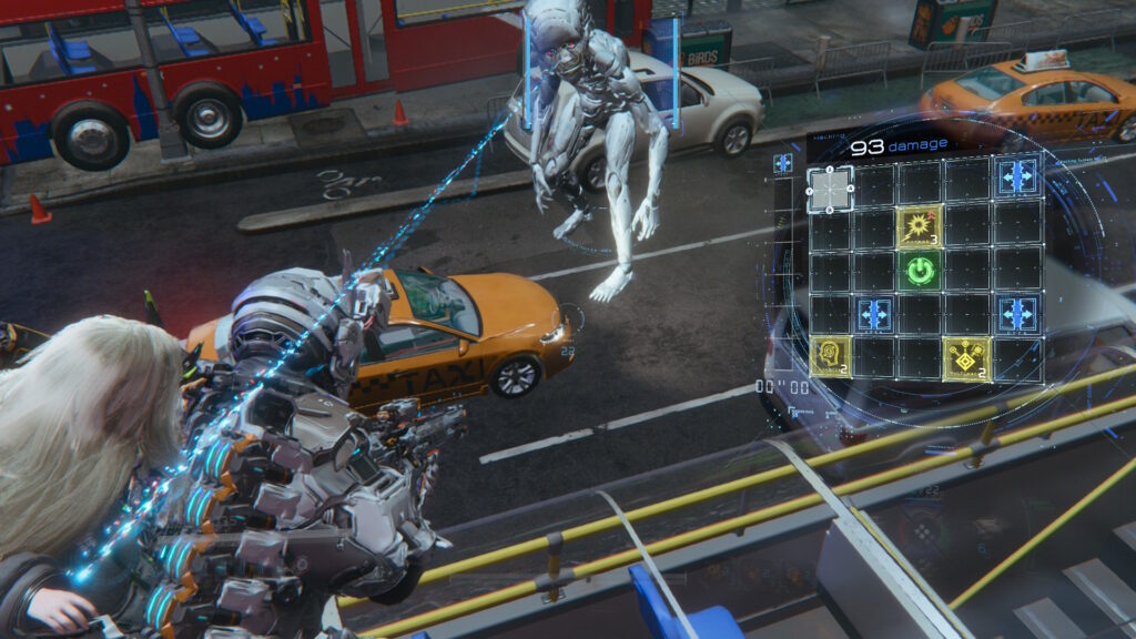 In het begin ga je hier wel aan moeten wennen. Tijdens het hacken kun je wel ontwijken en schieten, maar toch is het lastig om de twee goed te combineren. Zeker aangezien geraakt worden door een vijand je hack reset. Hierdoor moet je goed je omgeving in de gaten houden en constant nadenken wat de slimste optie is. Je hebt in elk geval geluk dat je hoofdwapen altijd je munitie weer aanvult.