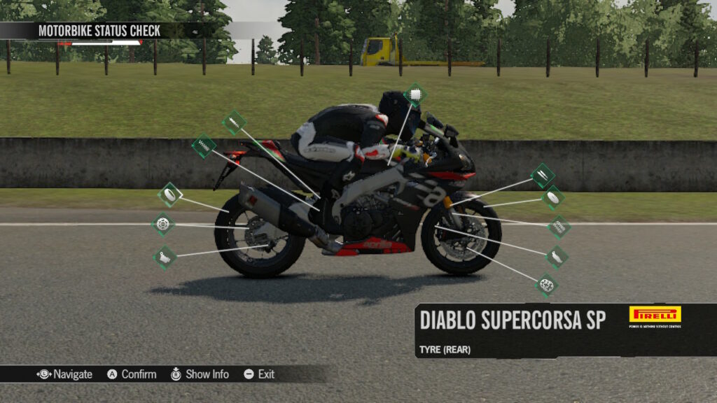Je kunt echt bijna alles aanpassen van de remmen tot de wielen tot de zitting. Alles om te zorgen dat je in de verschillende racemodi de beste bent. Dat maakt het spel uniek in zijn genre. De verschillende modi bevatten onder andere online, een campaign en single-shot races. Elk werken ze met dezelfde realistische race-ervaring en kun je op elk moment het spel pauzeren om naar de status van diverse onderdelen te kijken wat ook weer erg fijn en interessant werkt. Helaas zijn de races an sich een stuk minder leuk.