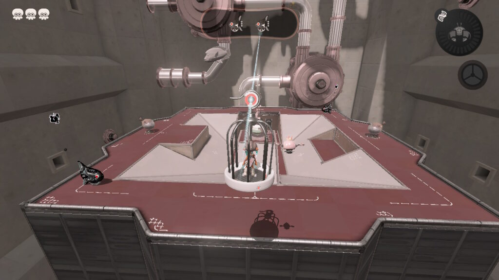 De tijdelijke upgrades vind je in de toren en raak je kwijt wanneer je doodgaat. Elke keer weer is het willekeurig wat je in de toren aantreft en welke build je precies kan maken met de chips. Het is een kwestie van uitproberen tot je wat hebt gevonden wat bij jouw speelstijl en wapen past. Dit riedeltje herhaalt zich telkens weer als je met nieuwe wapens aan de slag gaat. Voor mij zit hier het plezier van de game. Ik houd ervan om te testen welke chips bij mijn speelstijl passen en soms te kijken of iets compleet anders ook kan werken.